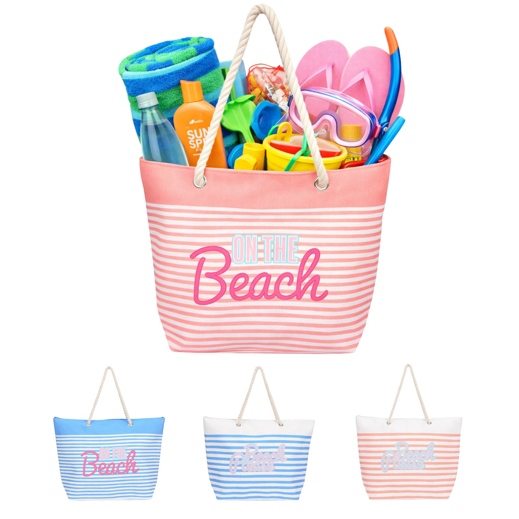 حقيبة شاطئ مخططة بمقابض حبلية