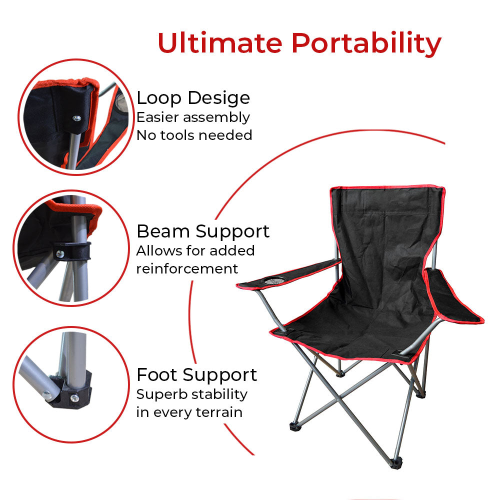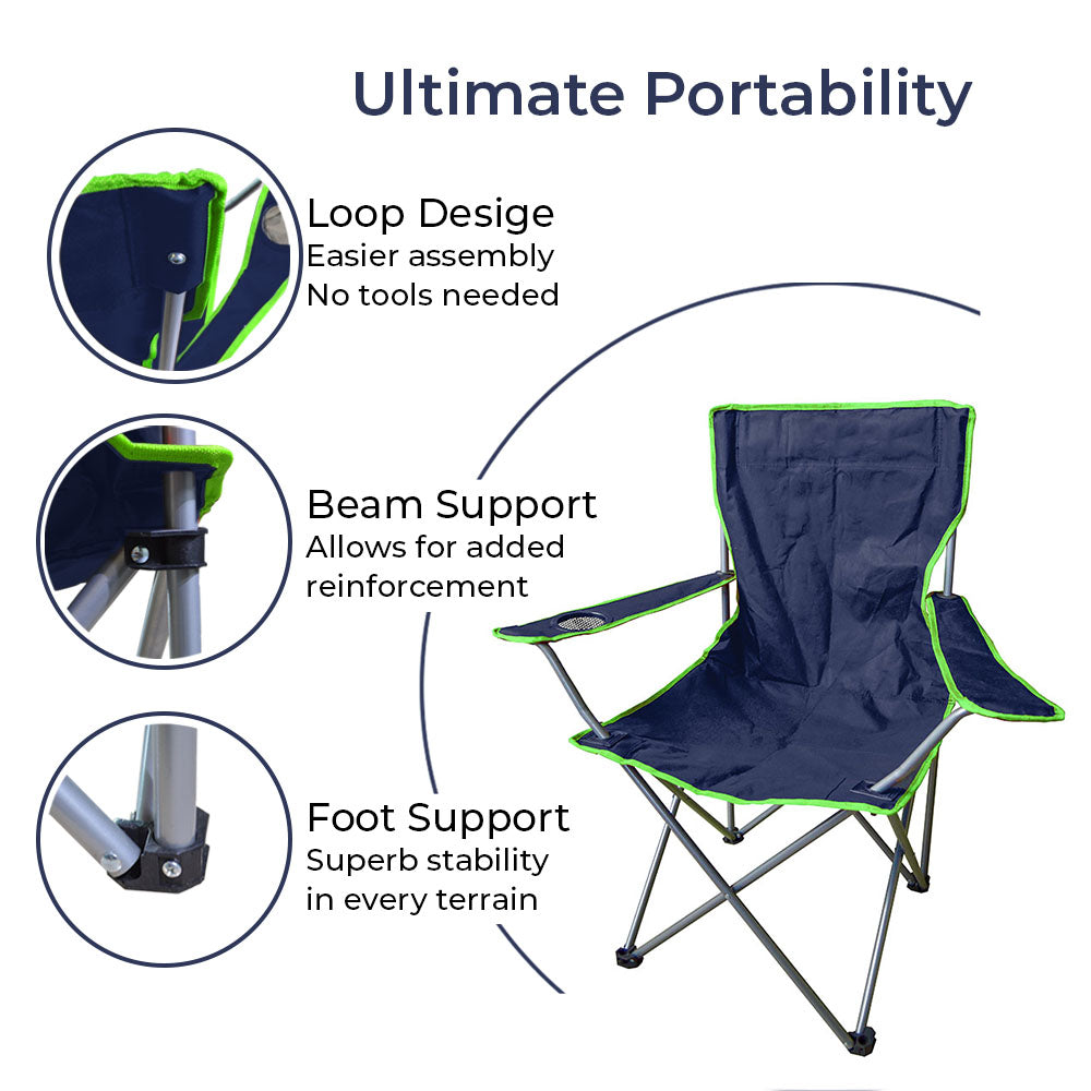 كرسي خارجي مع حقيبة حمل وحامل مشروبات - تصميم قابل للطي
