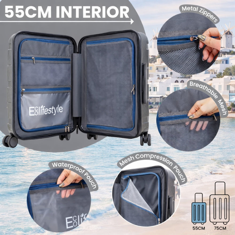 Mykonos Grey Hardshell Luggage Set - Reflective Metallic Design - 2 Pieces
