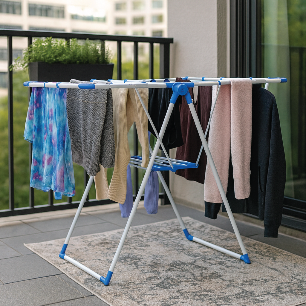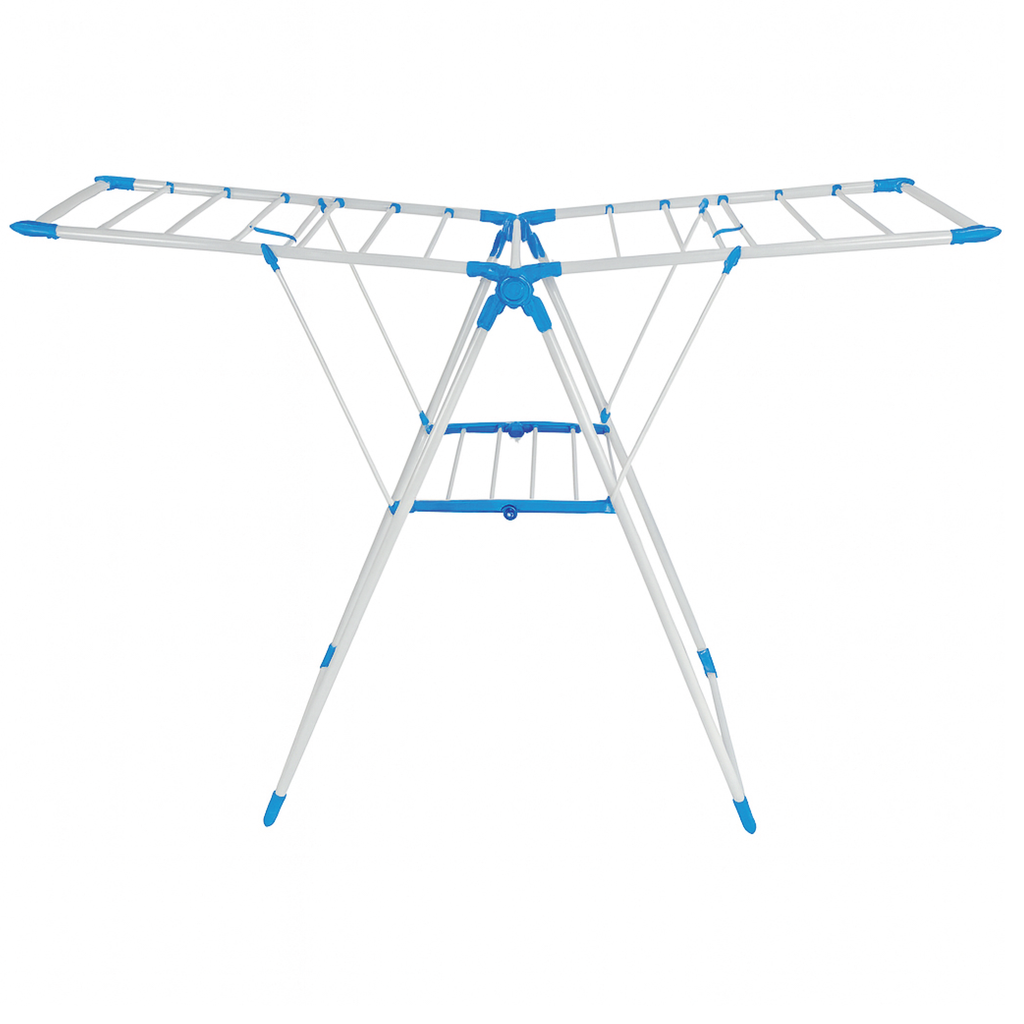 Dry your laundry the easy way with this foldable standing clothes drying rack. Designed for everyday use, it features two drying levels and a sturdy frame made from iron pipe spray and durable polypropylene plastic. The foldable design makes it easy to store when not in use, while its lightweight build allows you to move it around effortlessly. Whether you're drying clothes indoors or outdoors, this rack is a practical solution for saving space and keeping laundry organized.